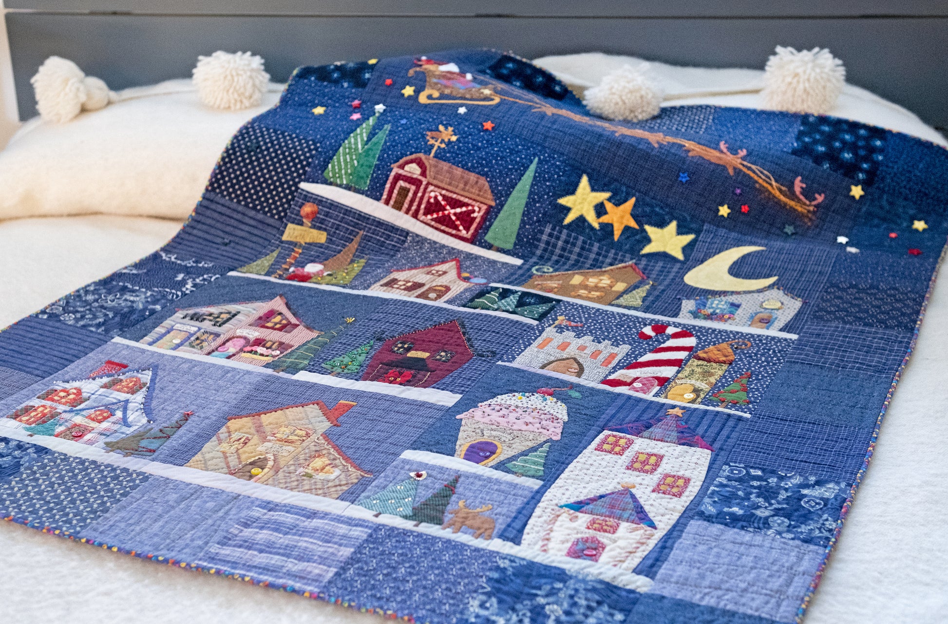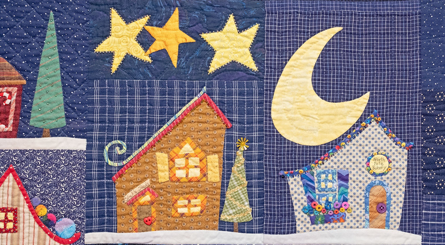 Make your own North Pole quilt or table runner with needle turn and/or wool hand appliqué techniques.