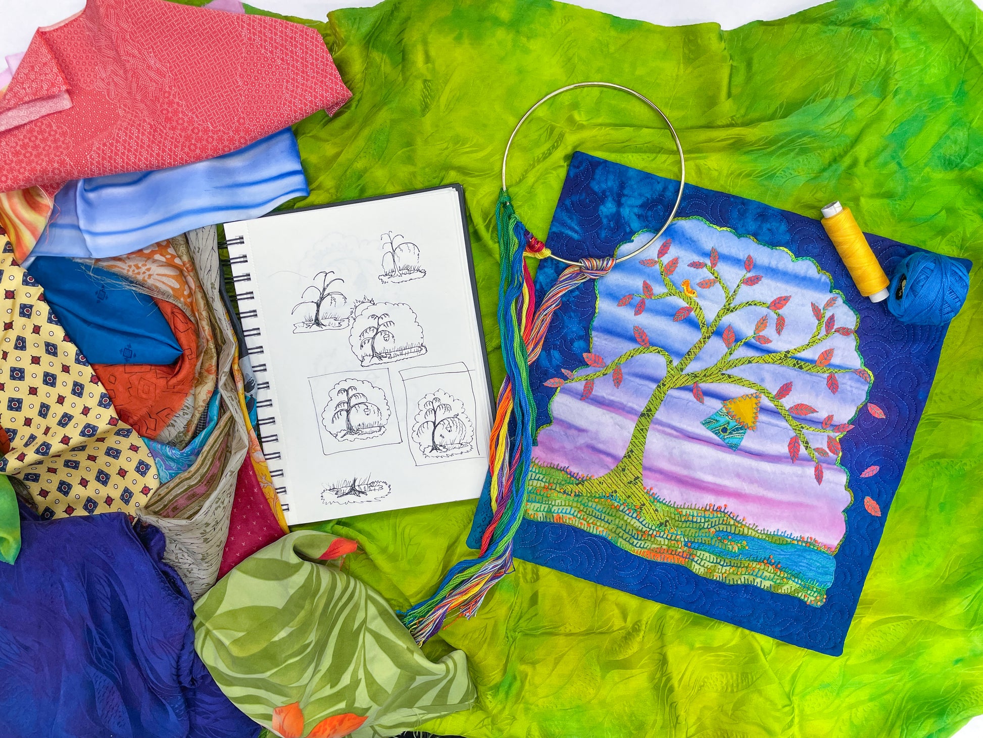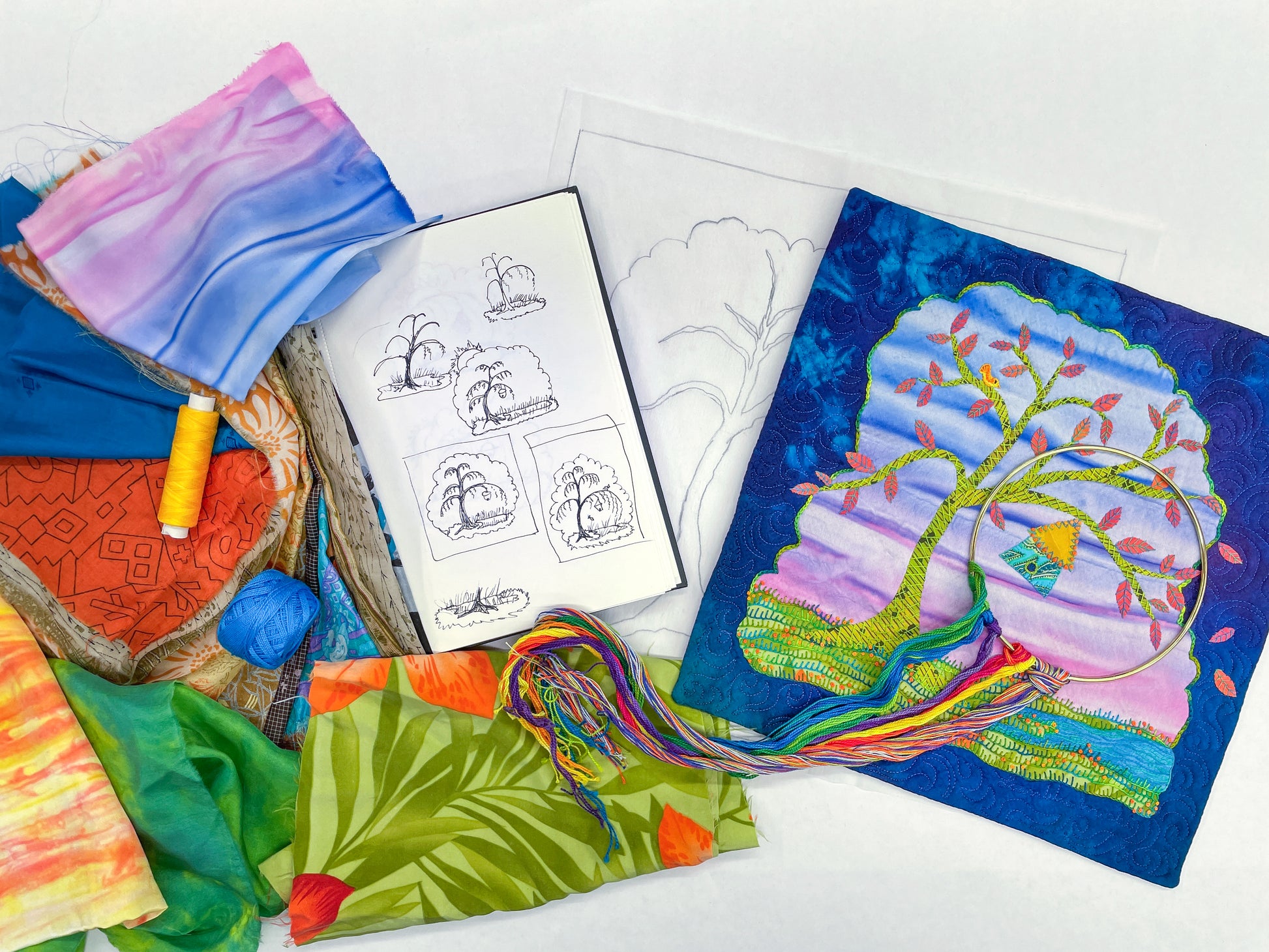 Create a stunning silk art quilt with expert tips on fusing, free-cutting, hand embroidery, and finishing techniques.